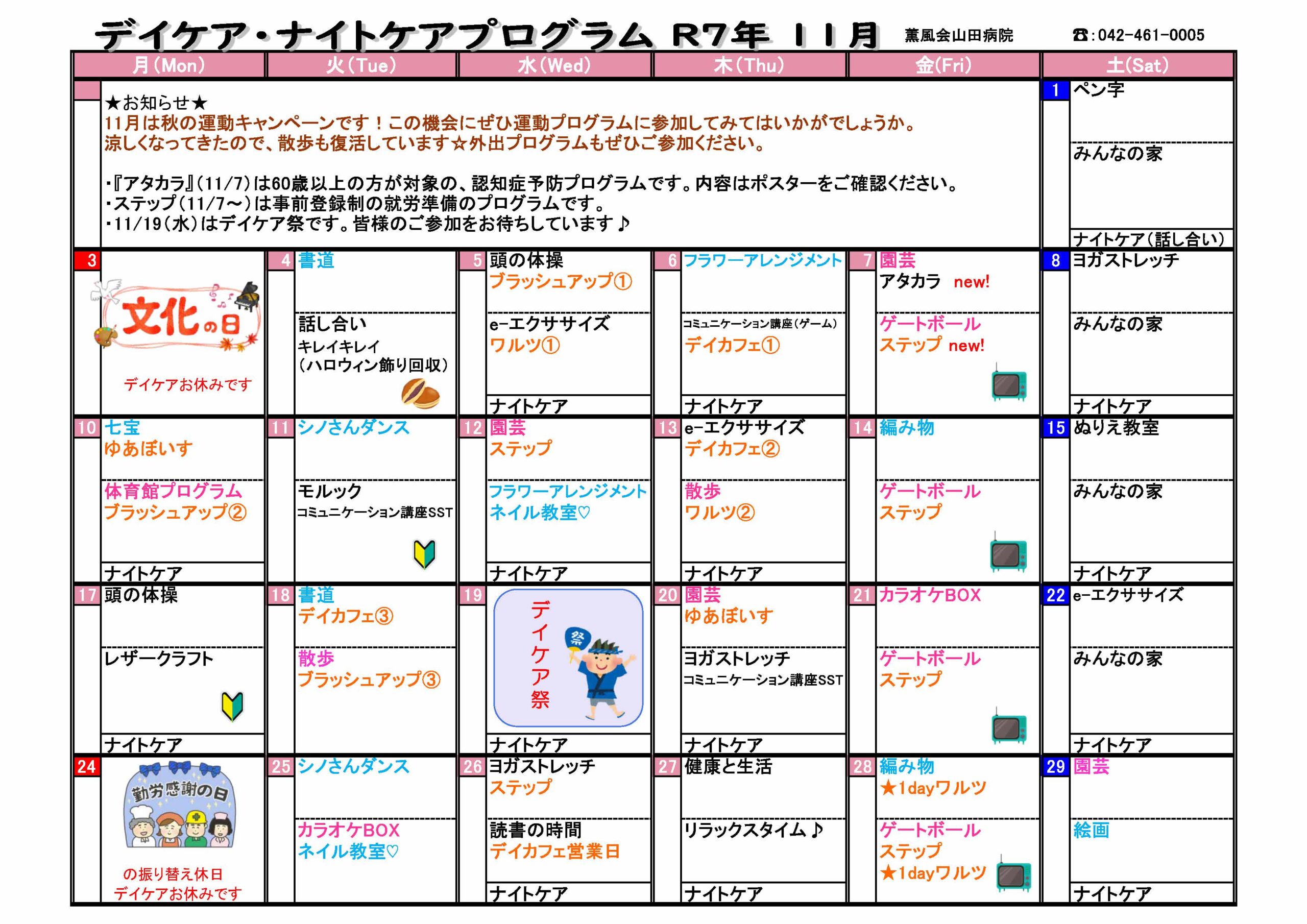 デイケア・ナイトプログラム 2025年11月号を更新いたしました
