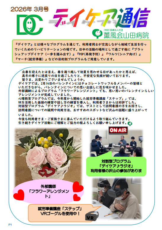 デイケア通信 2026年3月号を更新いたしました